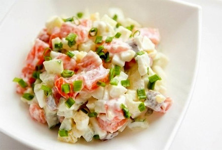 Этот салат хорош не только своим вкусом, но и тем, что за неимением какого-то из ингредиентов его легко можно заменить другим или вовсе исключить.