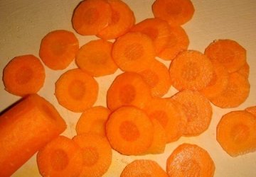 Морковь (половину) очищаем и режем кольцами – если корнеплод большой, полукольцами.
