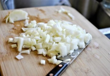Луковицу чистим и нарезаем.