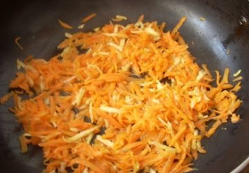 Оставшуюся морковь трем на мелкой терке – она нужна для того, чтобы придать супу густоту.