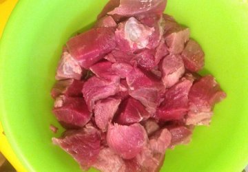 Первым делом необходимо вымыть и разрезать мясо не небольшие кусочки