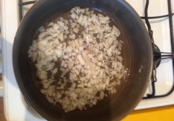 высыпать нарезанный лук в сковородку и обжаривать в течение 2-3 минут, до приобретения небольшой золотистой корочки