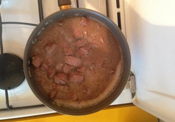 добавляем на сковородку мясной бульон или обычную воду, ставим медленный огонь и парим мясо в течение 20-25 минут.
