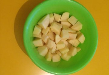 тем времене берем картошку и нарезаем ее на кусочки небольшого размера