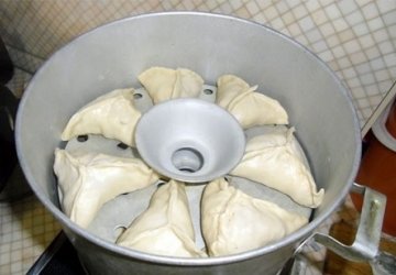 Мантоварку смазываем маслом и выкладываем в нее изделия. Вода во время выкладывания должна быть кипяченой. Через 40 минут блюдо будет готово.