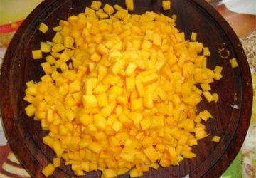Тыкву промываем и очищаем от кожуры. Затем режем мелкими кубиками.