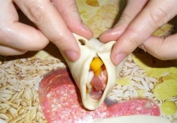 - Тесто готовится точно так же, как на классические пельмени. Замешивать его следует крутым – при помощи воды и муки. Остальные компоненты в него можно не добавлять, разве что яйцо для придания изделиям желтоватого оттенка и соль.
