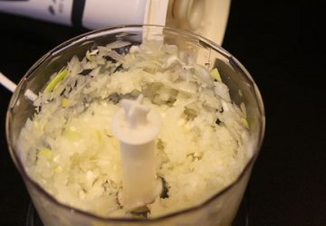 Луковицу очищаем, промываем холодной водой и измельчаем головку при помощи блендера. Так как лук не должен чувствоваться в мантах, его можно измельчить современными кухонными приборами.