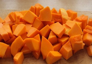 Тыкву освобождаем от кожуры и режем небольшими кубиками.