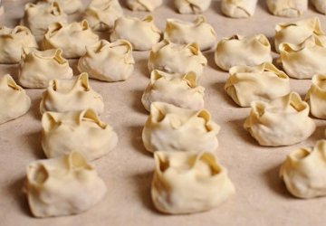 В итоге у вас должен получиться мант, как показано на фото. Выкладываем изделия на деревянную доску, слегка посыпанную мукой.
