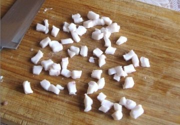 Сало также нарезаем маленькими кубиками.